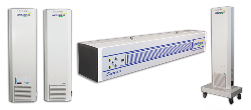Steri-Air esteriliza o ar interno de ambientes “fechados” através de fluxo forçado de ar, que passa por uma câmara irradiada com Ultravioleta tipo C germicida. Steri-Air deve ser usado na prevenção das infecções e contaminações transmitidas por microorganismos presentes no ar e por ele transportados. Pode ser usado em consultórios médico-odontológicos, salas de cirurgia, quartos hospitalares, domiciliares e outros.